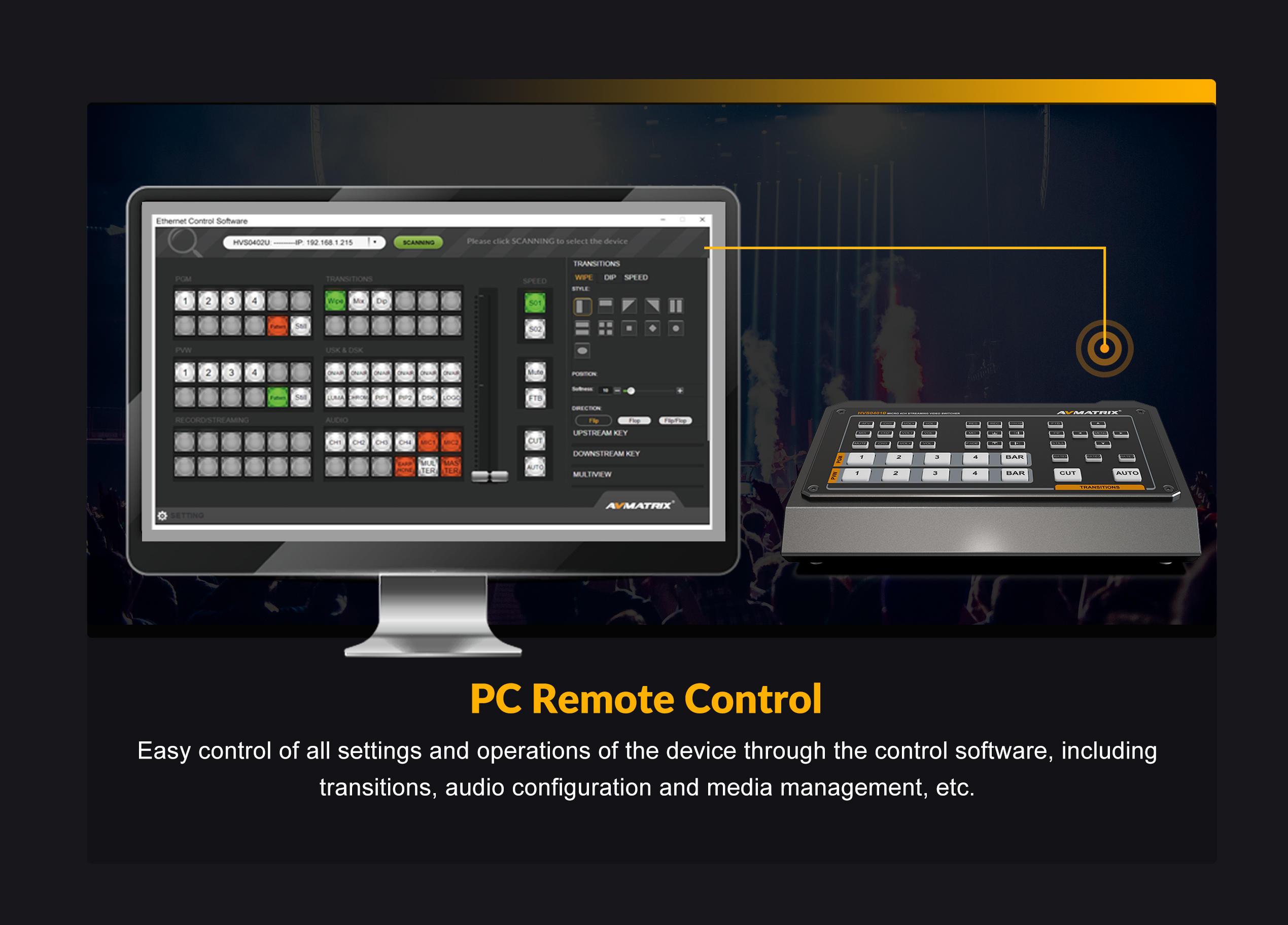 AVMATRIX Micro 4-Channel HDMI & DP Video Switcher with Streaming & Recording HVS0401E
