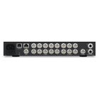 Configurable to 16, 13, 10, 7, or 4 up view, it includes monitoring of program, preview, inputs, media players, DSK, and clean feed with optional labels and audio meters.