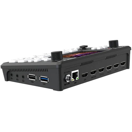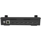 - Input video via four HDMI ports and output via one HDMI program and one auxiliary output, one UVC output, and one RJ45 LAN port.