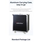 The included aluminum case is wheeled for easier transport between locations.