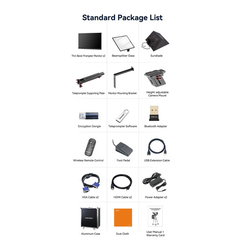 The included camera mount lets you adjust the height of the teleprompter to suit DSLR cameras, camcorders, and cinema cameras. The drawstring hood blocks extraneous light from entering your lens or flaring the monitor screen.