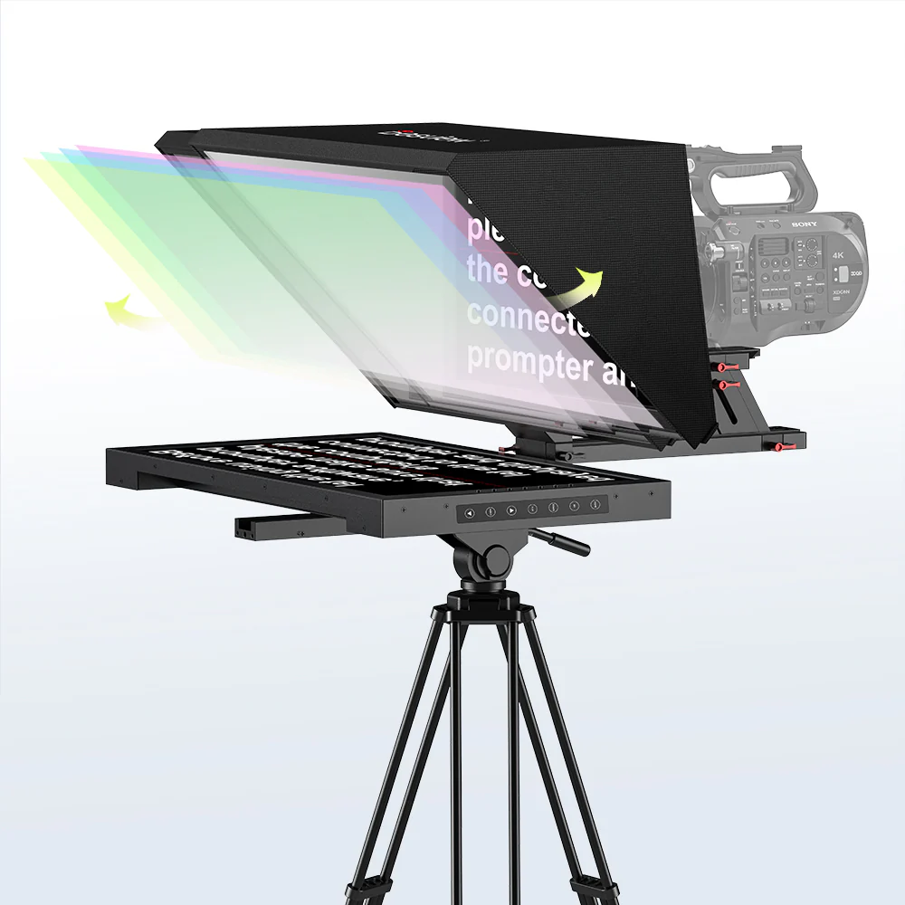• 20-inch single-screen teleprompter for clear script viewing