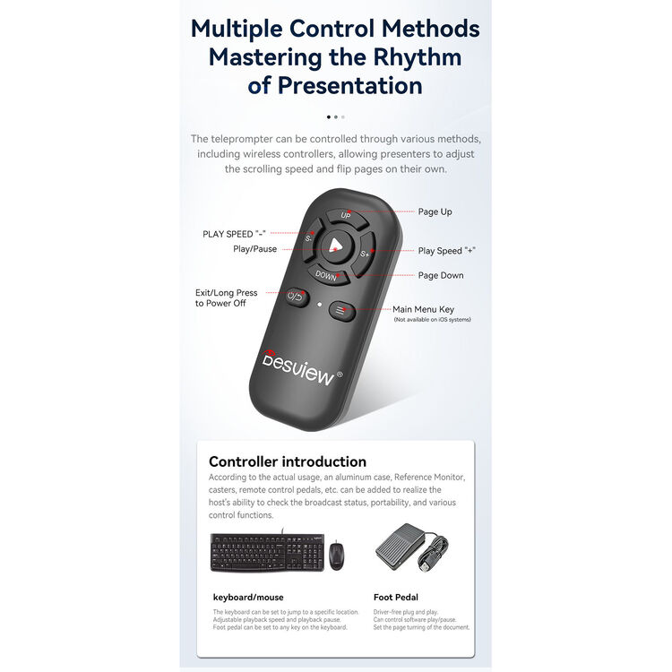 Included in the kit are multiple control options — a wireless Bluetooth remote and a foot pedal — that allow presenters or production operators to control scrolling speed or page flipping without touching the display, making it ideal for both solo creators and professional video teams.