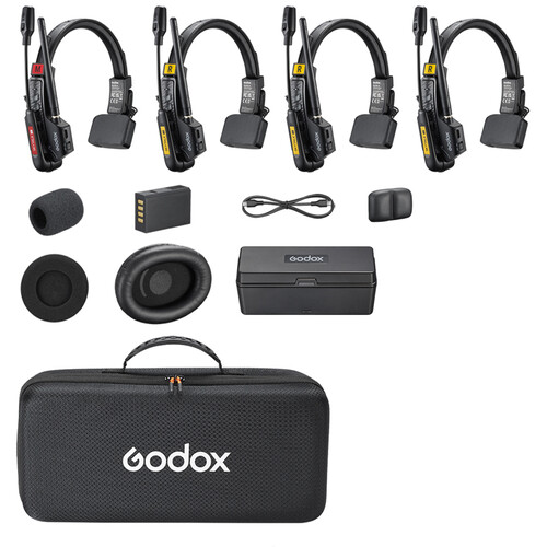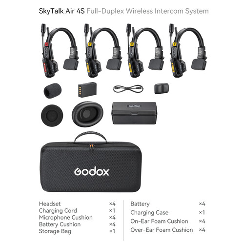 The Godox SkyTalk Air 4S is a full-duplex wireless intercom system designed to keep small to mid-size teams connected with clear, hands-free communication. This configuration includes four single-ear headsets and can be expanded to a maximum of five headsets. The system delivers real-time, two-way conversation with no installation or setup required. With long battery life, environmental noise cancellation, and a lightweight single-ear design, the SkyTalk Air 4S is well suited for film crews, live streaming, weddings, aerial shoots, and other coordinated productions.