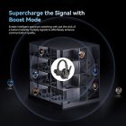 Two high-gain external antennas on each headset boost the transmission distance to up to 1640′ without obstacles. Strong, anti-interference technology makes the system ideal for complex and large events. Use boost mode to engage intelligent spectrum switching to further enhance communication quality.