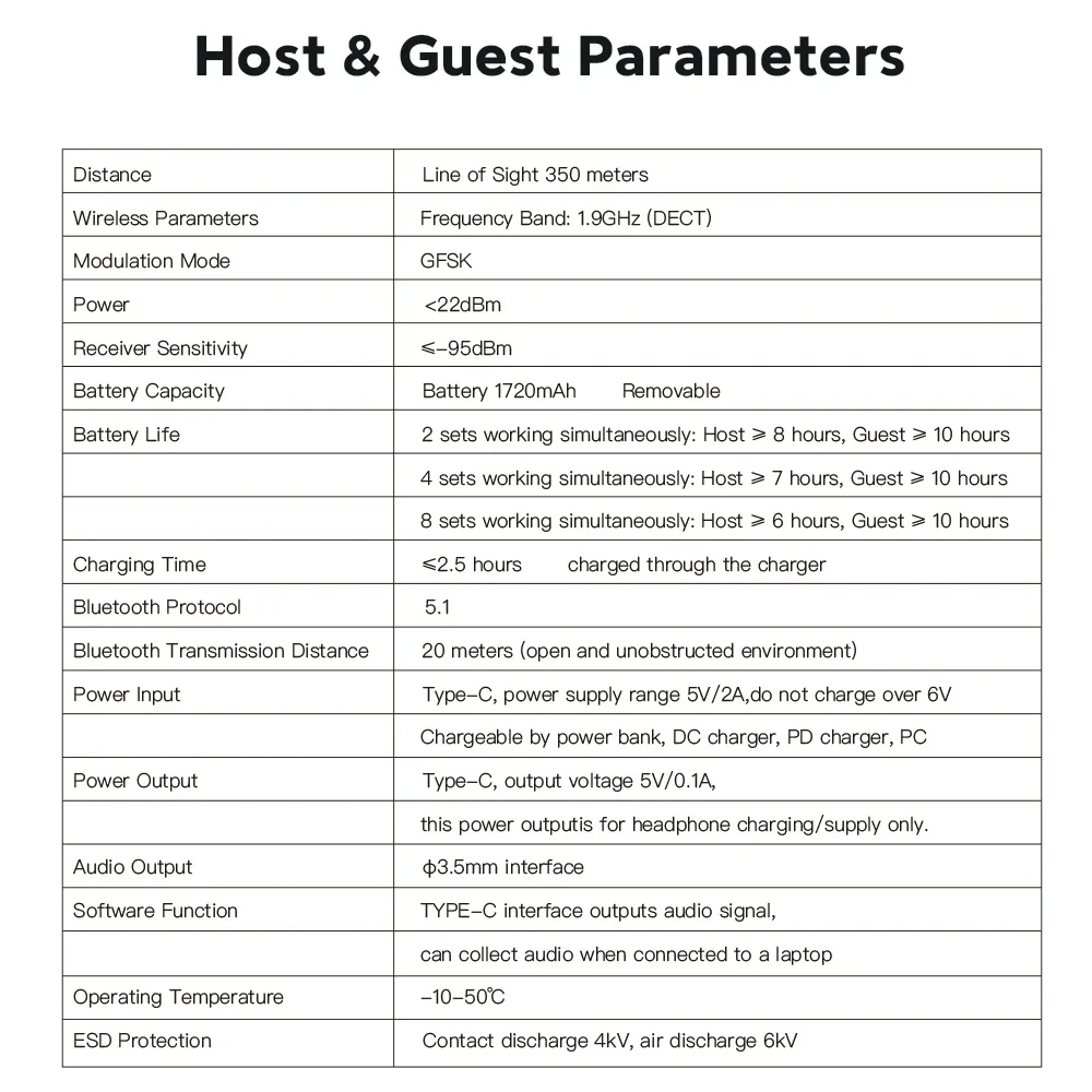 Full-duplex wireless communication, supporting up to 8 sets (standard configuration includes 4 sets and 8 sets).