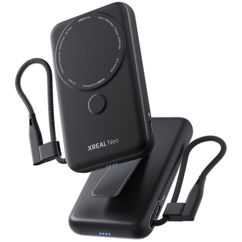 The Neo USB-C Screen Casting Device and Power Bank from XREAL is a multi-port battery pack that doubles as a portable video dock for the Nintendo Switch & Switch 2, Steam Deck, ROG Ally, and more. It features an integrated USB-C cable that provides screen casting and up to 40W of power delivery, while a second USB-C port outputs video to XREAL AR glasses (not included). Lastly, a third USB-C port functions as a 60W charging input for the Neo and its 10,000mAh battery. In addition to the aforementioned devices, the Neo may also be used to charge other compatible USB-C devices, such as phones and tablets. Other features include LED power indicators and a choice of magnetic device attachment or the built-in kickstand.